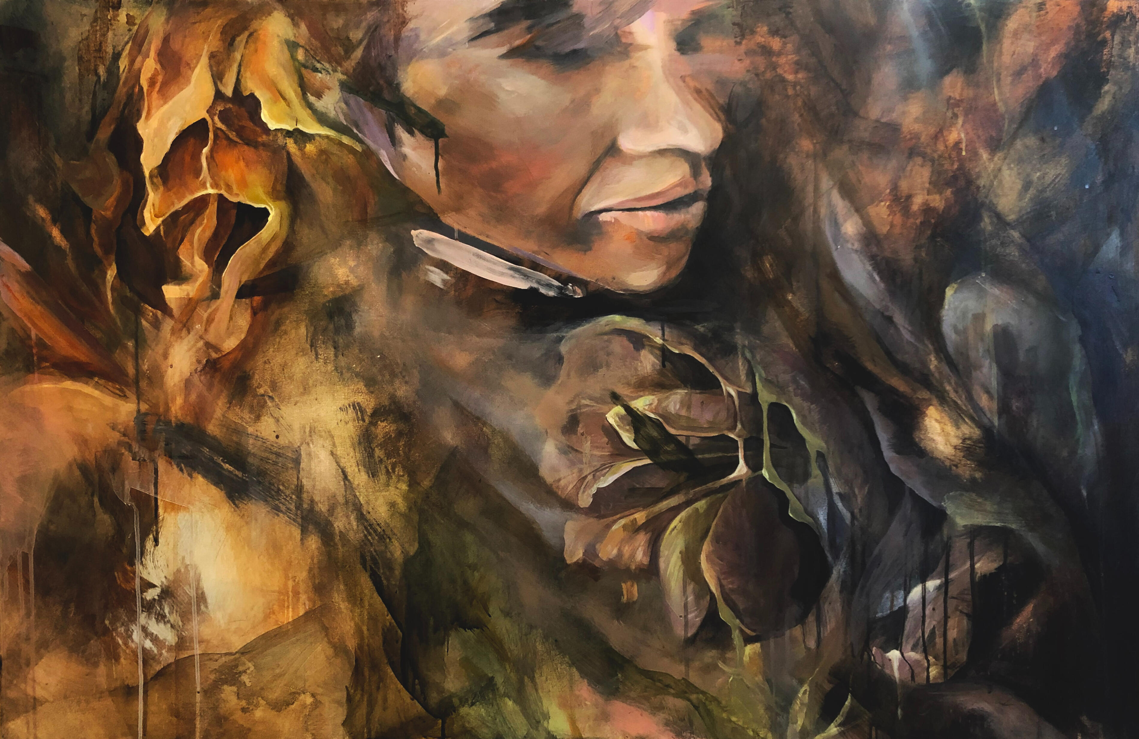Chrissy Kuiack is a Toronto based artist and muralist. Working from canvas to city streets with merging styles of loose brush strokes and the soft aerosol layers to create her works of art. Her work is recently heavily inspired by flowing fabrics and fluid textures.These collection of paintings are some recent studio works.